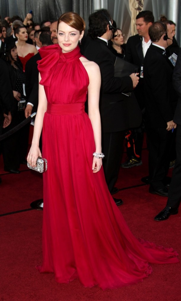 Many a fashion critic commented that this bow drowned petite Emma Stone, and many said redheads should never wear red. I say, she looks amazing and I love her. Ever since she played the lead role as quirky Olive Penderghast in teen comedy Easy A, I’ve followed Emma’s career (and fashion choices) and always love her red carpet looks. This Giambattista Valli frock is no exception. It’s romantic, it compliments her alabaster skin and it’s perfect for the Oscars, bravo Emma.