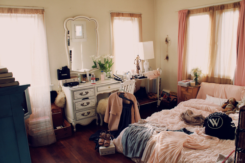 Today’s only non-fashion photo comes courtesy of Kimberley Gordon of Wildfox who blogged this picture of her spare room the other day. Check out how beautiful that is! Apparently she was packing for a trip to Las Vegas but I love the composition of this image and of course, mostly the romantic/shabby chic decor. Kimberley always uploads gorgeous pictures so you should definitely check out her blog, and if you love this room as much as me, there are loads more images from the same room up there too.
