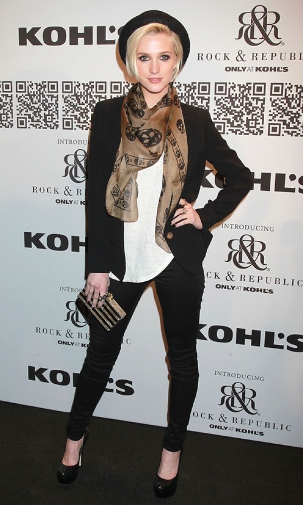 This is such an unusual choice for me and yet, I utterly, utterly love this rocky look that Ashlee Simpson is pulling off. Never having been a particular fan or follower of the Simpson sisters or their careers this image suddenly made me want to be a follower of Ashlee’s fashion choices. This look was perfectly apt for the Rock & Republic event Ashlee attended at NYFW and it’s making me want to buy a bowler hat, I already have two scarves which are incredibly similar and this outfit is otherwise so simple it’s easy to recreate. Yes.