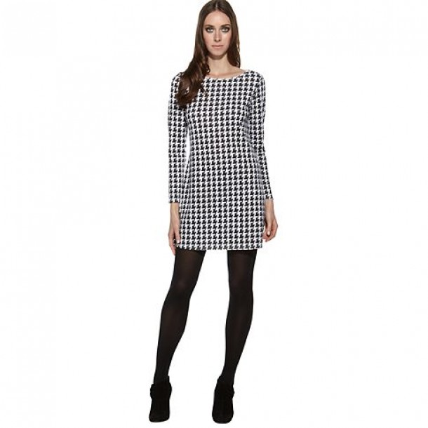 Shortly after this, I made the move here to London, and one of the first places I went was Westfield White City where they have a huge designer shopping area called The Village. Of course there was THE dress, the Gaga dress in all its glory in the window of Ferragamo and since then I have searched high and low for a dogtooth dress with which I can accessorize copious amounts of pearls to ‘get Gaga’s look’ (minus the hat and tights). It just so happens that last week my Mum, a bargain hunter of the highest calibre, posted me a surprise package and said only ‘think Salvatore’. I knew exactly what I was going to find inside the parcel, and here it is.
