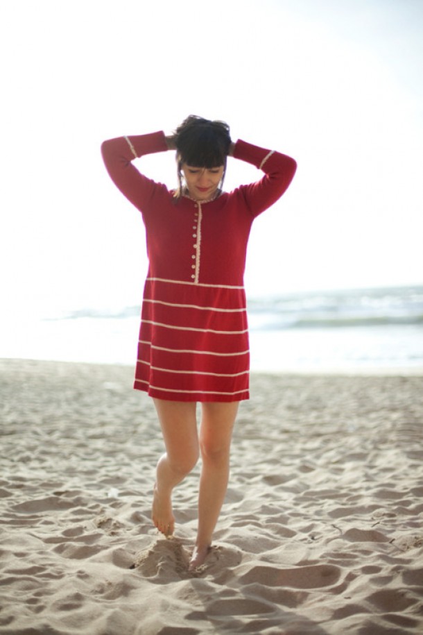 Some summer sun now with this beach perfect look from Calivintage blogger Erin. This oversized jumper dress is so gorgeous and a great pullover for when the sun goes in on lazy summer beach days. Of course I’m a sucker for anything nautical so the stripes are definitely doing it for me, so cute!