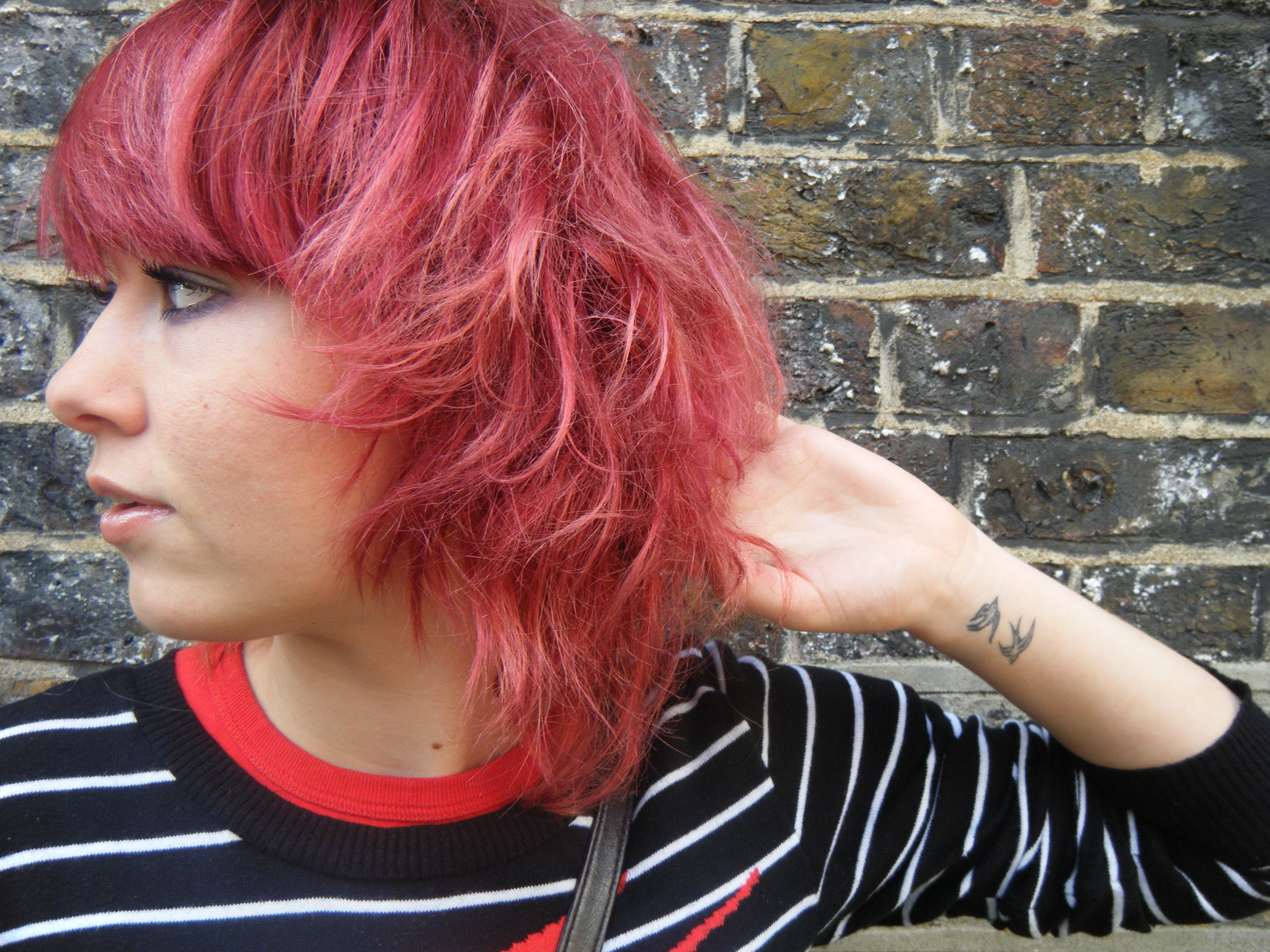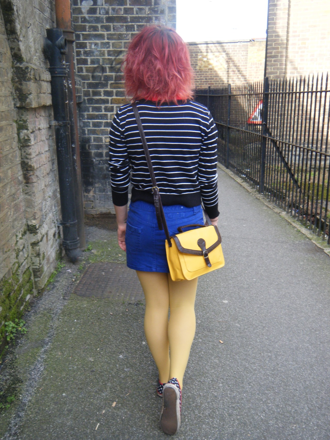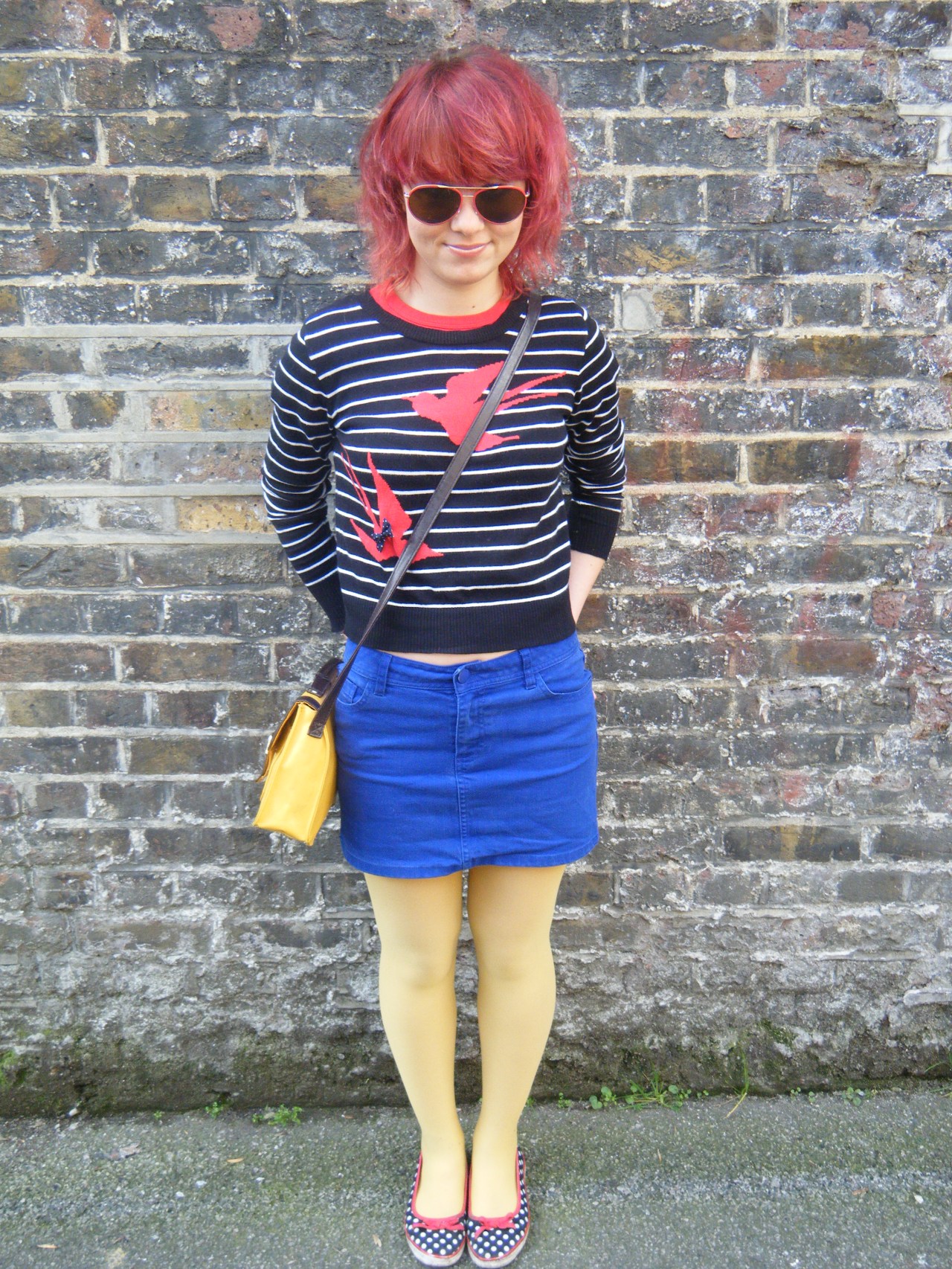 Annie went for bold summery brights and plenty of print with her look and even matched her gorgeous swallow jumper to her tattoo. That’s dedication! The statement jumper is G21 George at Asda, the sunglasses and tights are Primark, the skirt is H&M, the bag is also from Primark and was part of her Christmas present from me and her cute polka dot pumps were also a gift from another friend. Annie’s just started a Tumblr, Kisses Aren’t Illegal, so it’s definitely worth checking out if you like her style, be sure to head over there to see what she’s been loving at the moment.