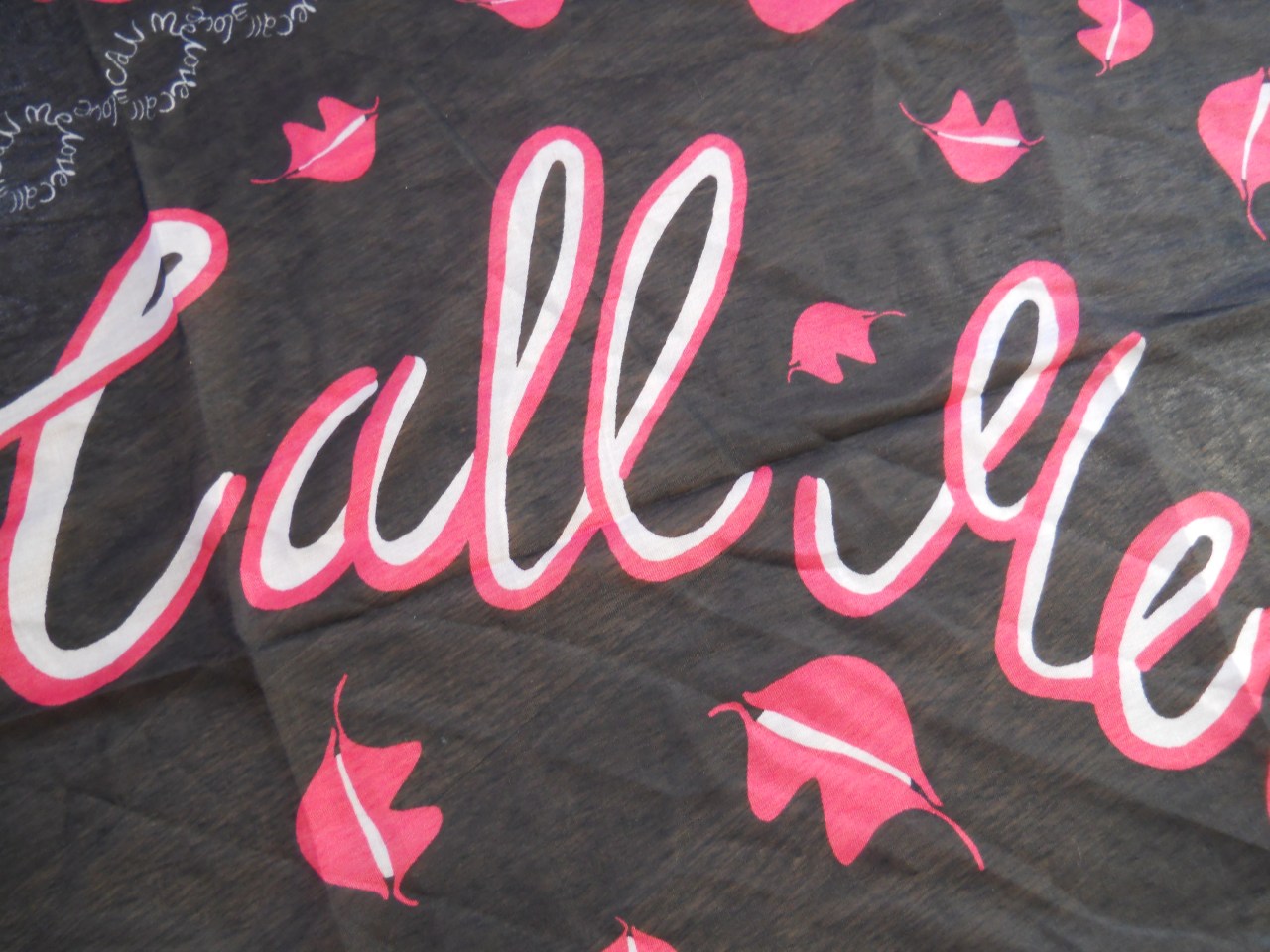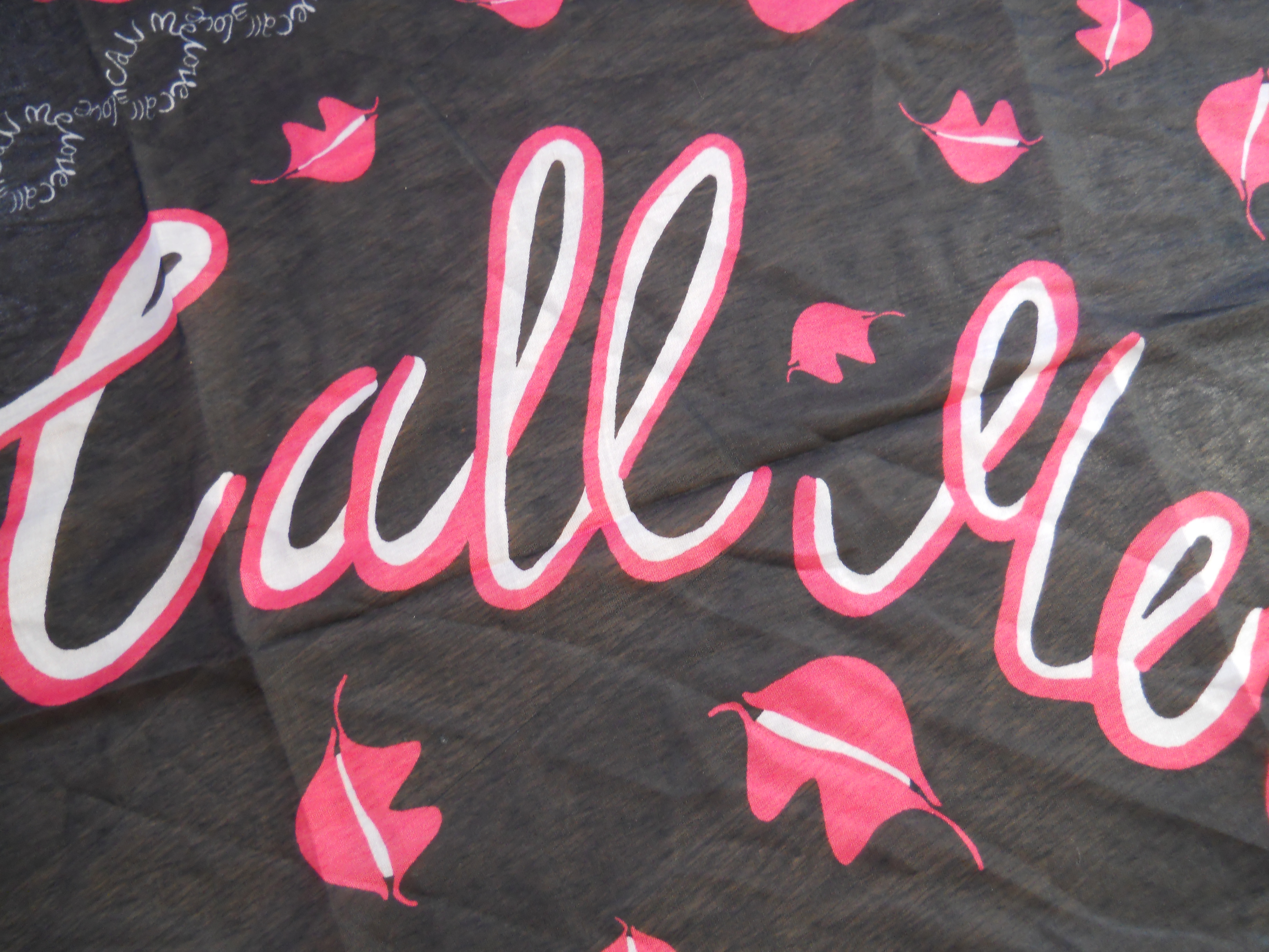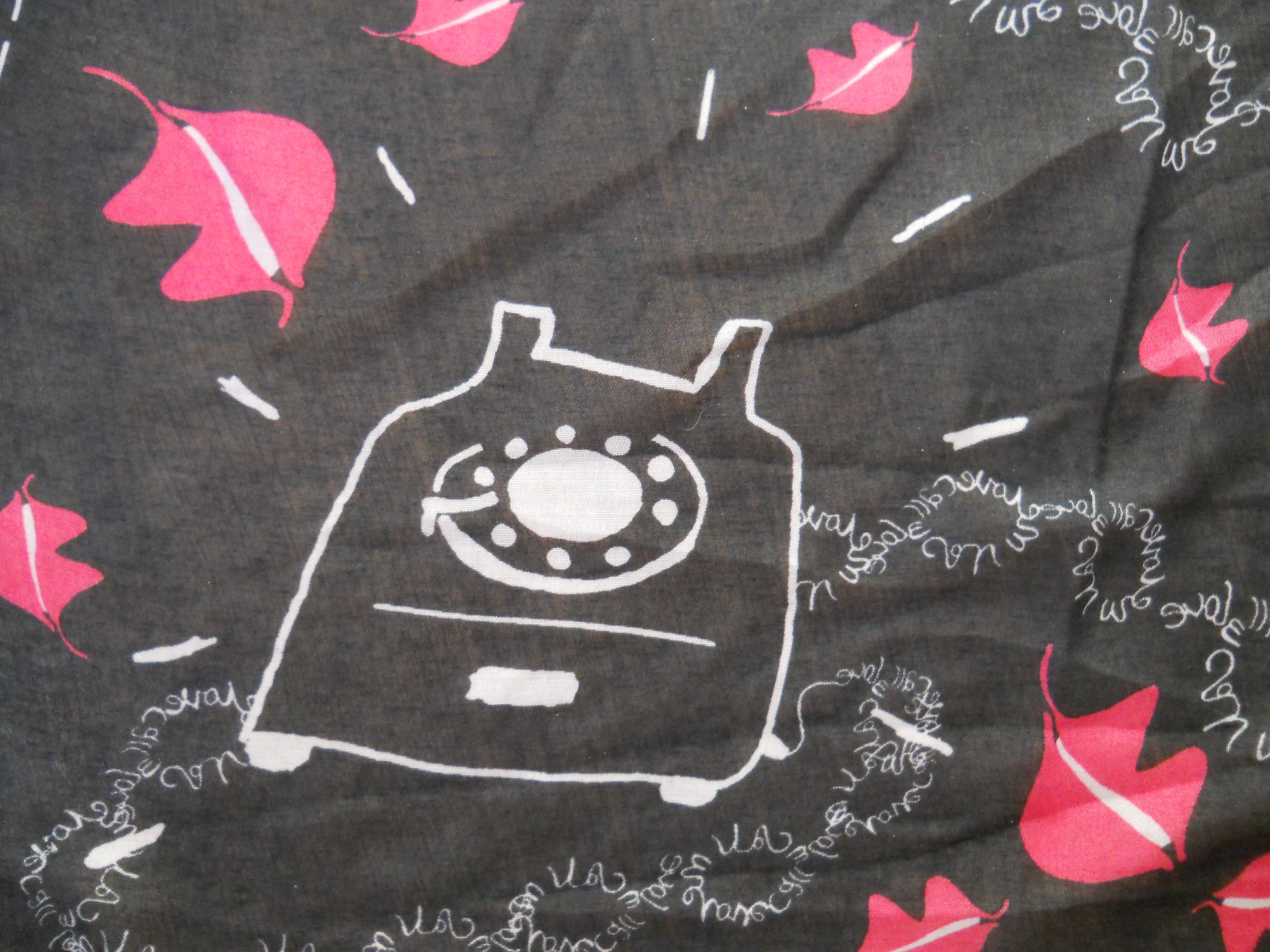 When opened out the large type reads ‘Call Me Love’ and a huge pair of lips in the centre is ‘talking’ into an old-fashioned phone. All around the edges there are circles of type and small lips, could it get any sweeter? Although whichever way you wear it you won’t see the entire picture, the small type circles and lips are always evident and I think it’s really versatile. I wore this on the weekend over the top of a Motel shirt dress for a bit of clash with leopard print, but then wore it this week over a simple tee and polka dot hoody for a more relaxed feel but to still add interest.