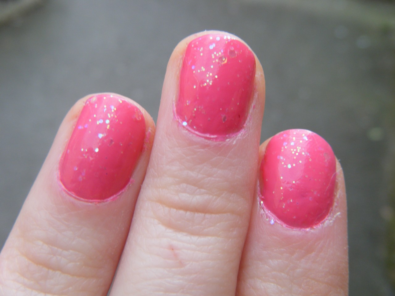 Here is a swatch from my hand with Candy on the left and Hot Pink on the right.