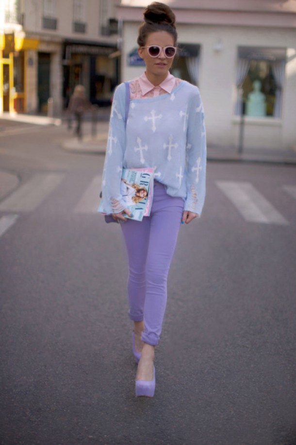 Today I bring you my style inspiration post all about this year’s huge spring/summer trend: pastels. The feminine, sweet-shop style colours are perfect for a prim look and easier to wear than you might imagine (tip: just get mixing!) I like to bounce between wearing more masculine pieces and grunging down my look as I mentioned last week in my grunge lookbooks, but at the same time there’s nothing more fun than pulling your favourite pink piece out of your wardrobe and going super girly with your look. Every designer worth their salt paraded pastels up and down the runway at the SS’12 shows (I’m looking at you Meadham Kirchoff!) and it’s finally that time of year in the UK where we might just be able to don some pastels and enjoy some sun. Just maybe.