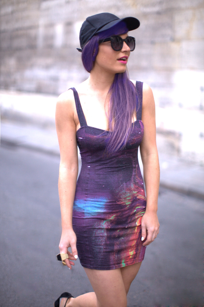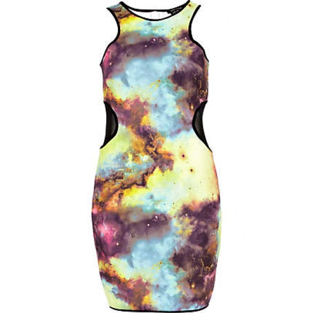 Printed dresses are what I would consider a wardrobe staple, as they can be dressed up or down, and when teamed with heels make a great go-to outfit for evenings out. When a girl is strapped for time, there’s nothing better than a stand out wardrobe piece that can she can thrown on, that will really go the distance and that can be worn several different ways for different events. One of my favourite bloggers, Frassy, showed off her fashion credentials in this fab galaxy frock recently, and you can get the look on the high street too.