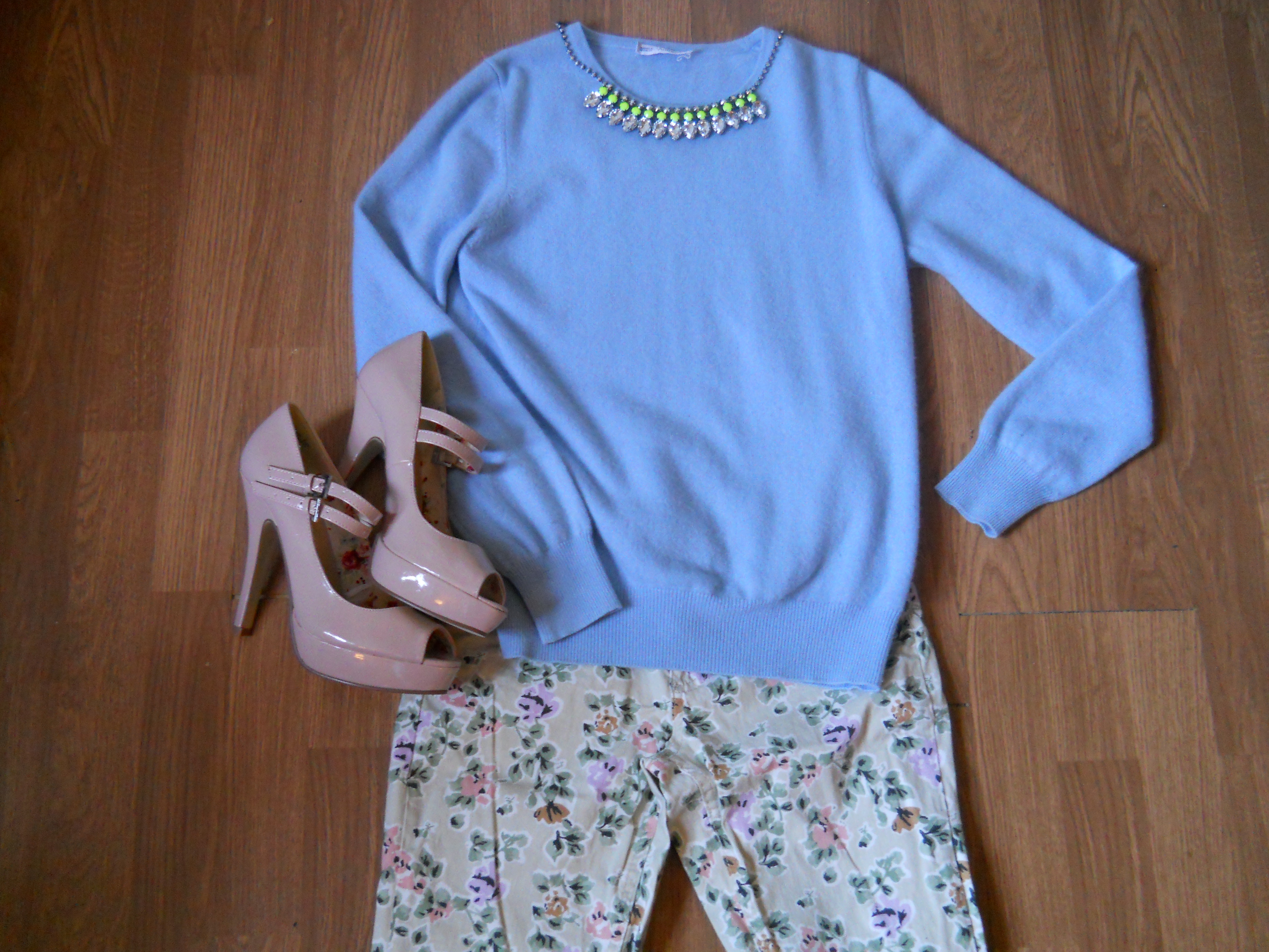 My boyfriend and I were wandering Portobello and I was in one of my charity shop routing moods when we went into Fara just off Portobello Road itself. As I was routing around I spotted something in the corner of my eye in the most gorgeous pastel blue, and as I grabbed it from the rack I realised not only was it a beautiful blue jumper, but it was 100% cashmere. I paid a lowly £20 for this brand new, never-been-worn jumper with the tags still on, and originally it should have been around £80+ from M&S. What a bargain!