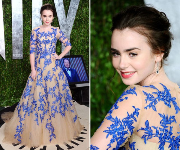Lily in Monique Lhuillier at the Vanity Fair Oscars Party: