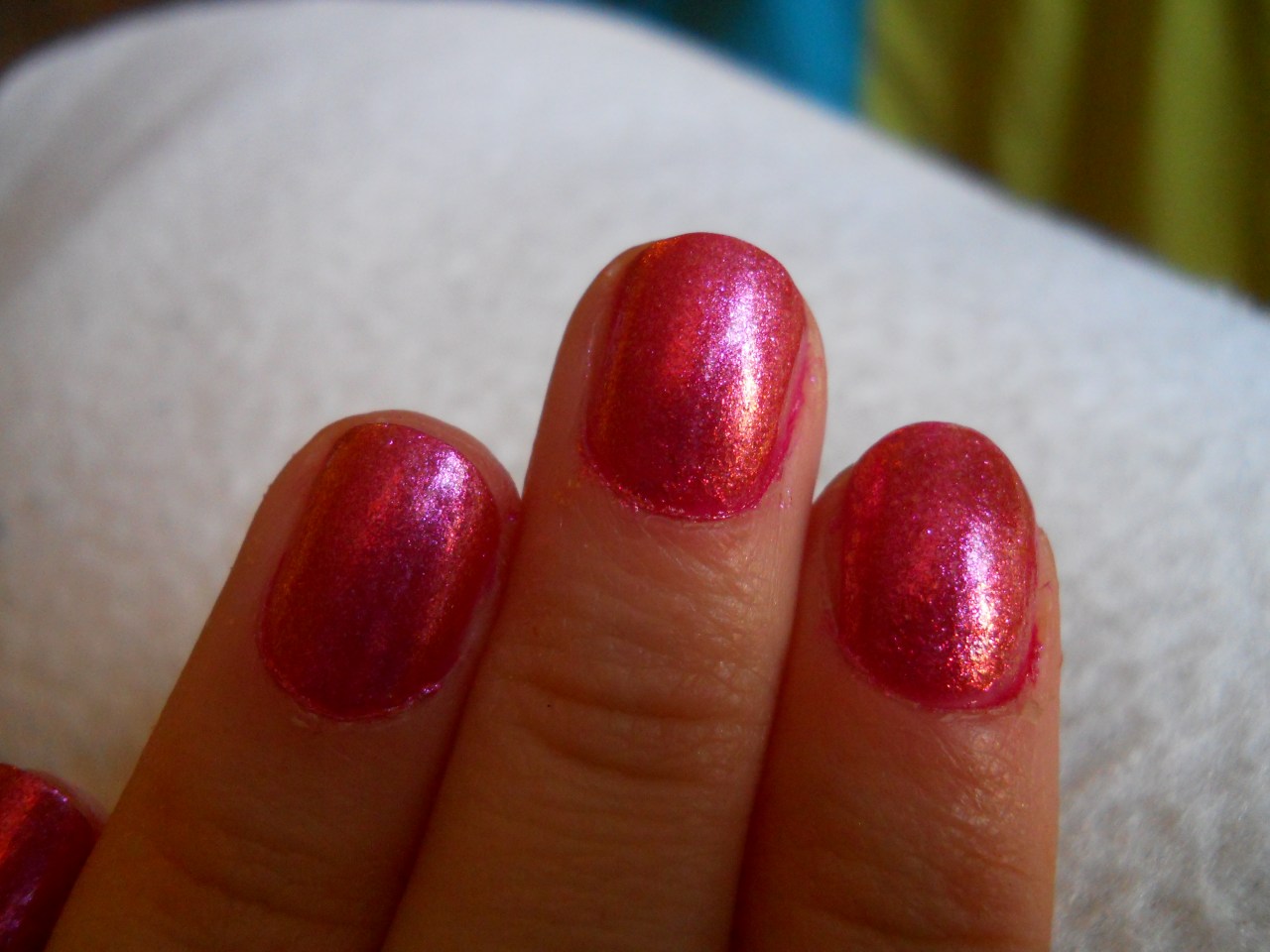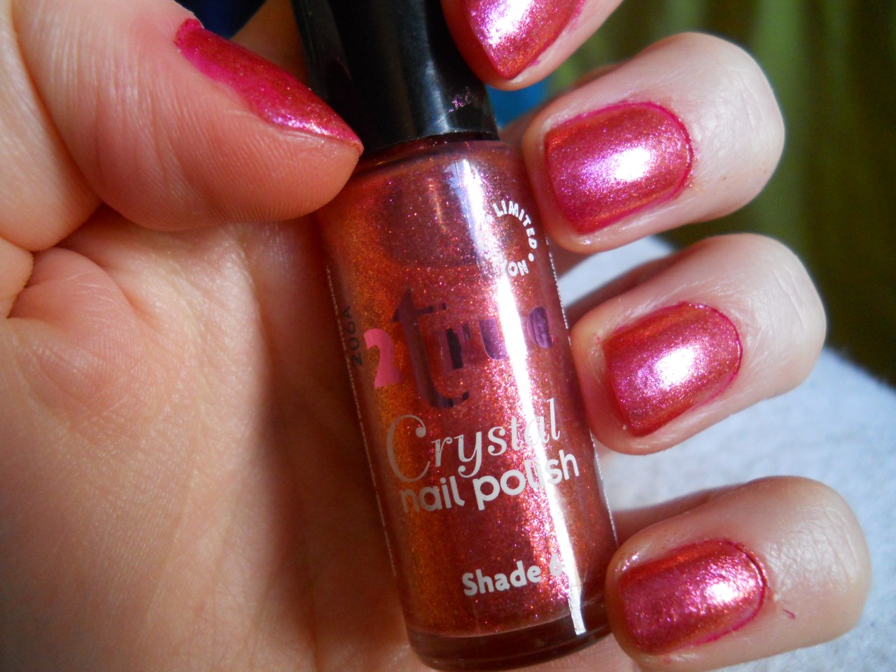 It doesn’t have a name other than being called ‘Shade 6’ and it is packaged differently from the other 2True polishes as it’s a limited edition ‘Crystal’ polish. For £1.99 I thought this was a treat that we could all justify buying ourselves and it certainly hasn’t let me down. Although it would take many layers to achieve full opacity, I applied two coats of Barry M’s Shocking Pink which is a bright pink as a base and then topped it off with two coats of the 2True polish. I applied this as soon as I got home and today is day three of having it on my nails and I’m still so in love with it. It catches the light amazingly and I haven’t seen a single chip so far. The gorgeous shine this polish creates hasn’t dulled and I can definitely see another good 2-3 days of wear. I highly recommend this for fun nails that don’t cost a fortune!