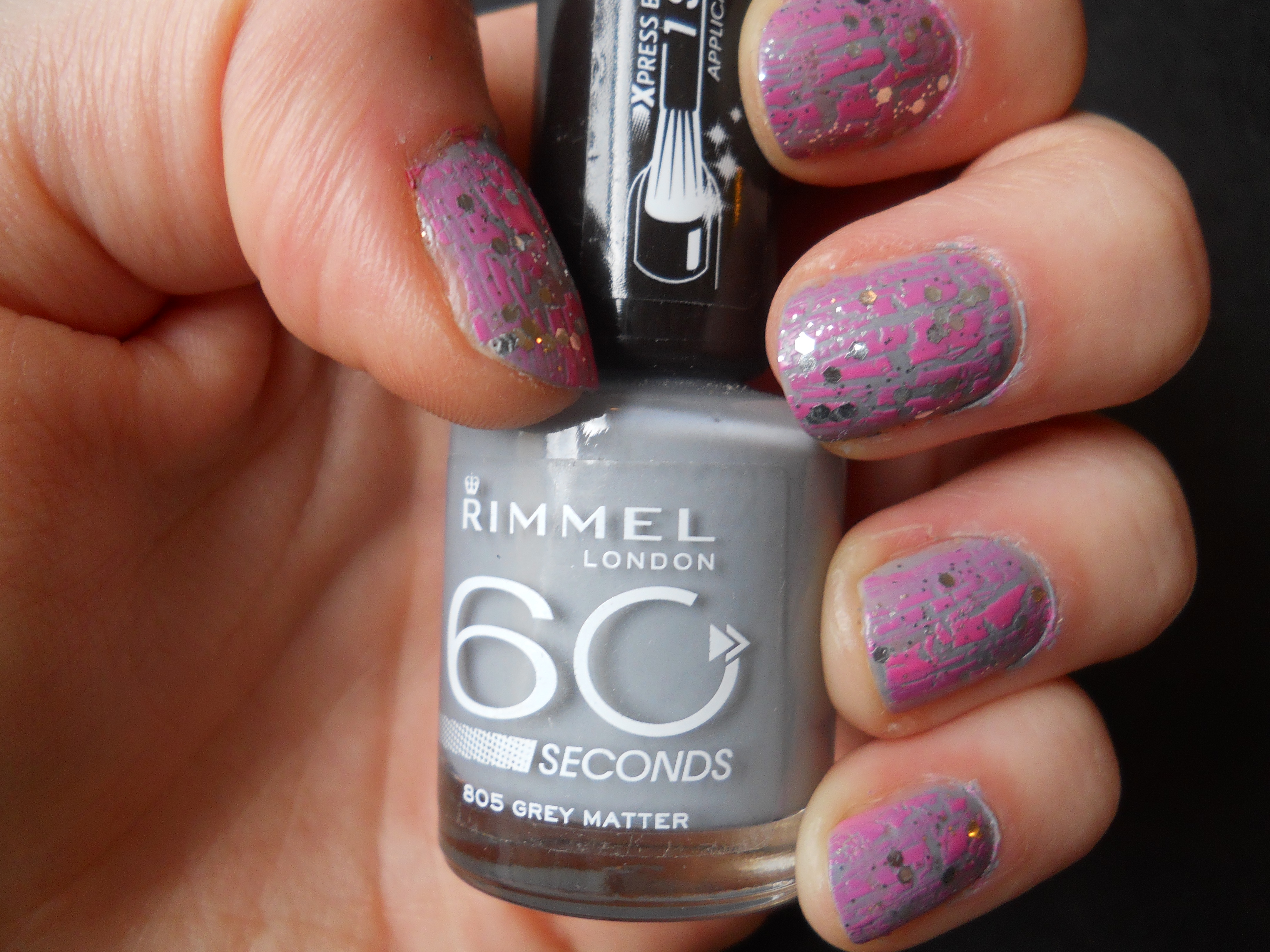 I love the way this turned out and I’ll definitely be combining these polishes again, buying the wrong polish seems to have worked out for me! As far as wear goes Rimmel 60 Seconds polishes are generally very good and super affordable, and Grey Matter is opaque in one coat. Barry M polishes are some of my formulas as they’re really durable and super opaque as well so I’d definitely recommend them too!