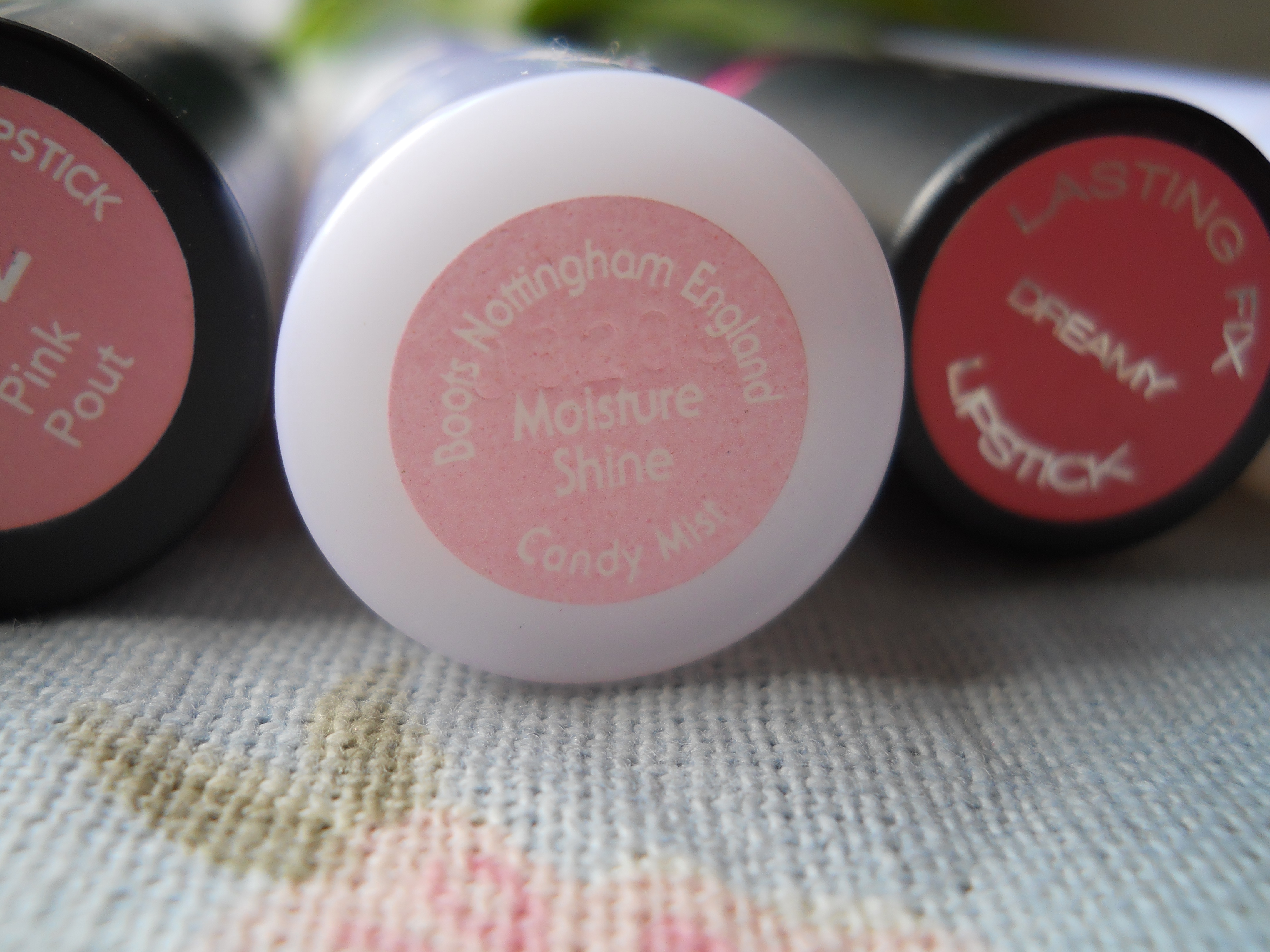 Swatches from left to right: Collection 2000’s Cream Puff Moisturising Lip Cream in Fairy Cake, Boots’ Natural Collection Moisture Shine lipstick in Candy Mist, Boots’ No. 17 Lasting Fix lipstick in Dreamy, Boots’ Natural Collection Moisture Shine lipstick in Rose Petal, Revlon’s Matte lipstick in Pink Pout, and Boots’ No. 17 Lasting Fix lipstick in Hawaii Pink.