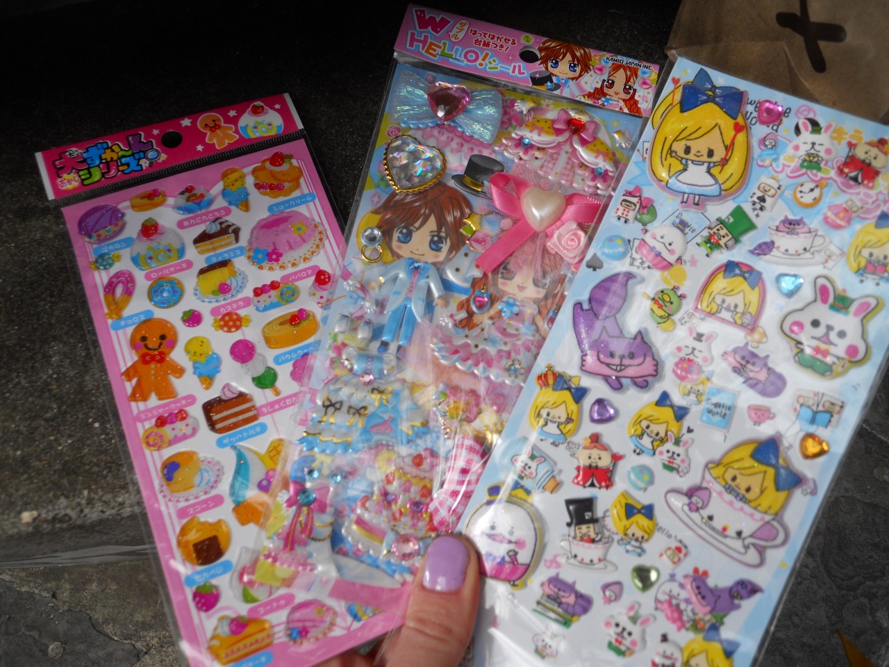 Then, on a recent trip to Artbox in Covent Garden I picked up some amazing stickers that were perfect for this project. I hauled the stickers in an OOTD post on the day, so you can see them there by clicking here. I chose one set with really 3D stickers in heart shapes and with lots of bows going on, one Alice in Wonderland themed set for a bit of fun, and finally cutesy food stickers in the shape of different desserts.