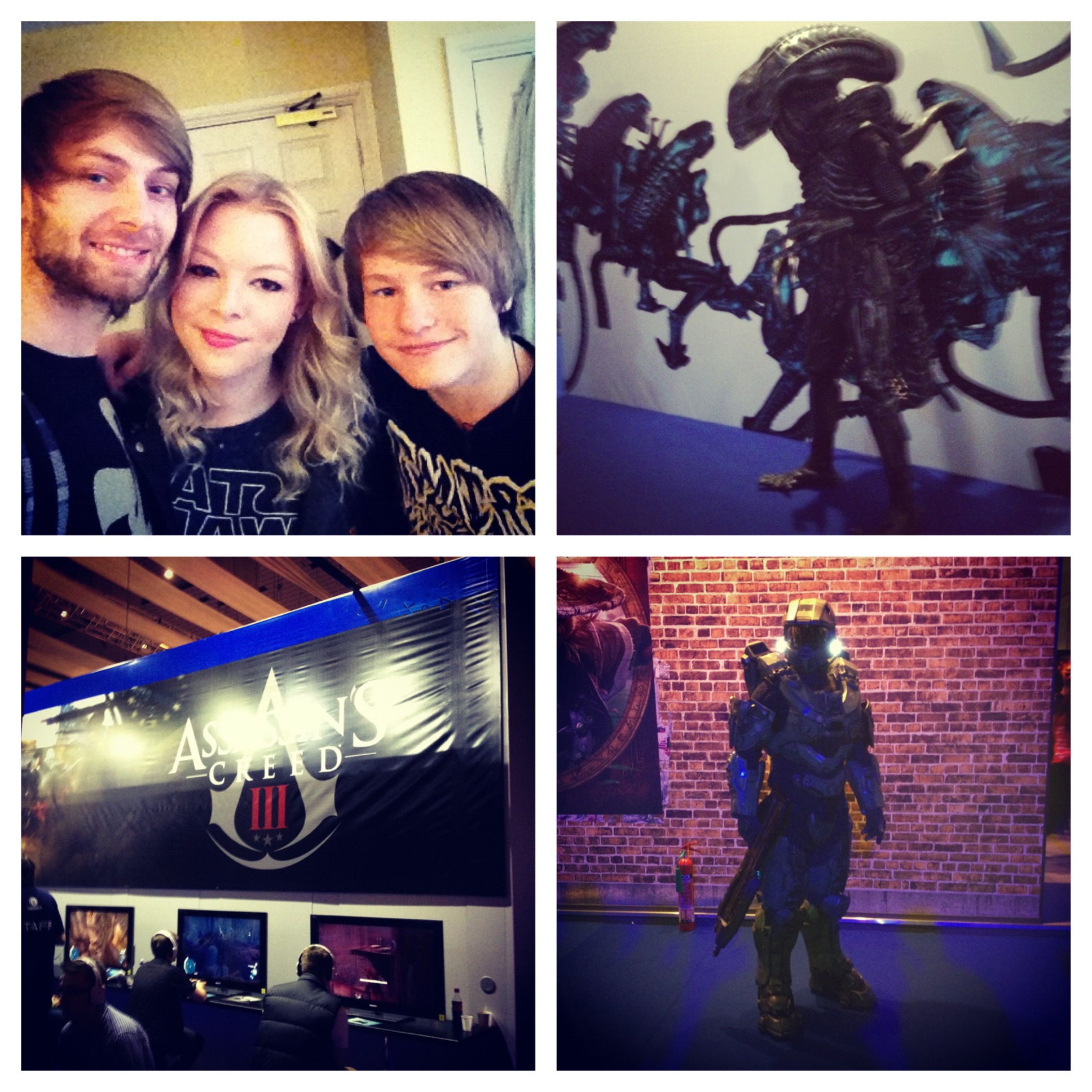 1. My boyfriend, me and my brother about to leave! 2. An ‘Alien’ scares passers by. 3. Waiting to play Assassin’s Creed III. 4. Halo’s Master Chief.