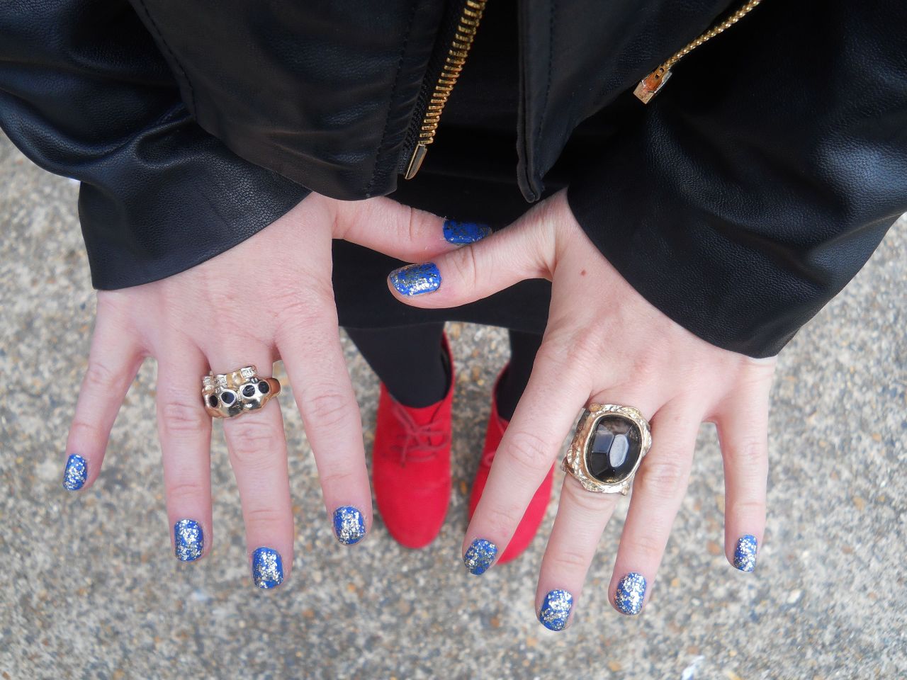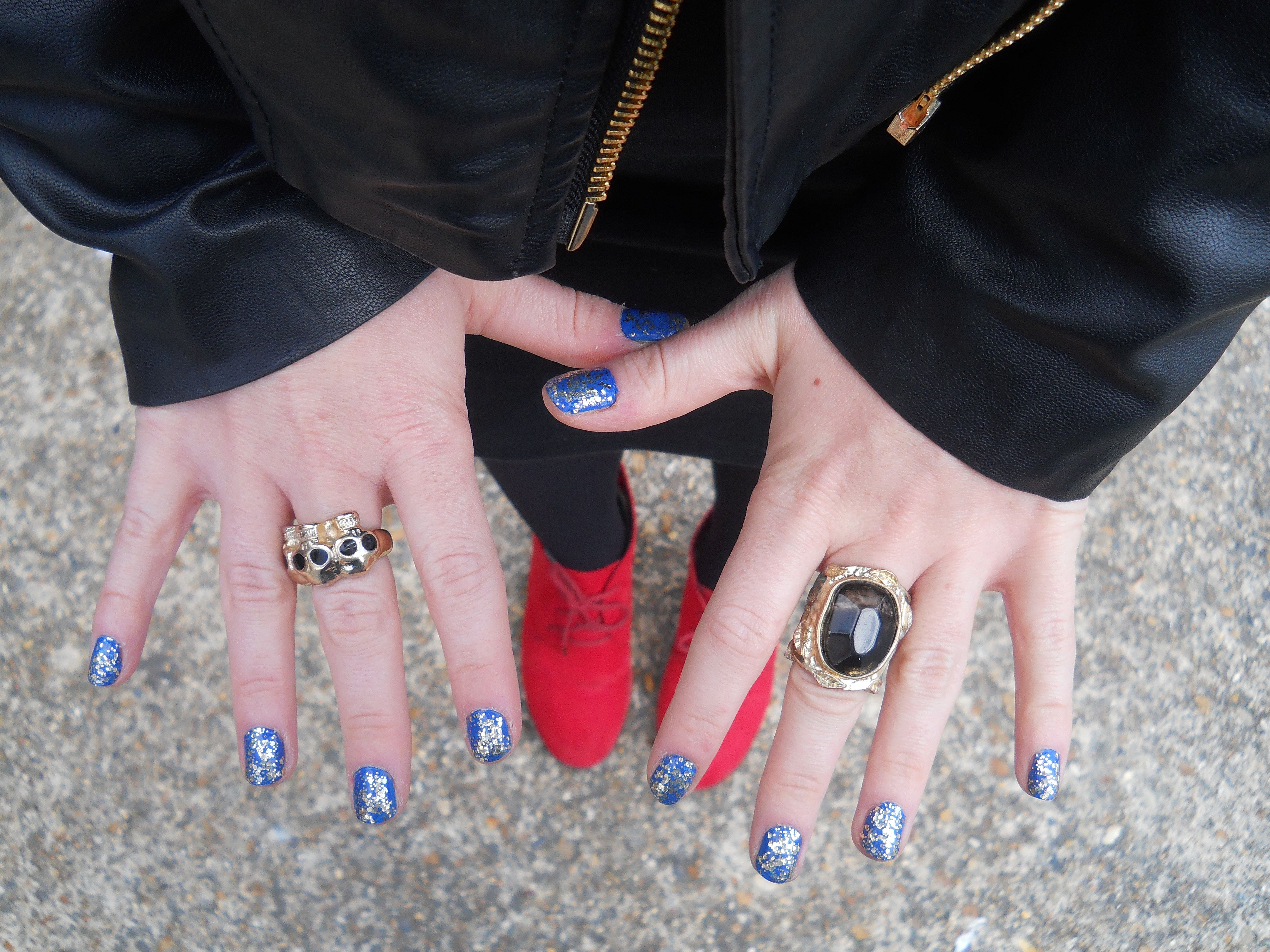 On my nails I chose this space-like Cobalt Blue from Barry M (available here) and topped it with gold glitter from Chit Chat at Poundland. Say what you will about Poundland, but their gold glitter is the longest lasting I’ve ever tried. You can see my full review of it here. My rings are both cheap and cheerful and have not left my fingers since I bought them both a few weeks ago. The skull ring satisfies my current skull obsession and was only £3.50 from New Look. You can find it here and New Look are currently running a buy one get one free offer on all their jewellery! The second ring is from H&M and I believe was £2.99, it’s not available online but I’ve seen it in every H&M I’ve been in recently so it shouldn’t be hard to find.
