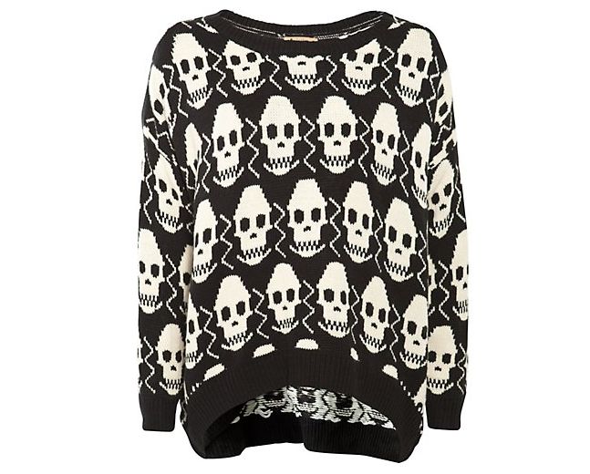 For a full-on, in-your-face skull look, this £27.99 Misumi for New Look jumper is the perfect piece. If you love statement jumpers (another a/w ’12 trend to watch out for!) then this will be right up your street. Teamed with super skinny jeans in black or a block colour this will really stand out and turn heads for the right reasons. The colder weather is definitely on the way and this oversized snugly jumper is the best remedy for a freezing temperature. This jumper reminds me of my Influence skull jumper which is available from New Look here and which I wore in a recent OOTD here, so be sure to check that out too!