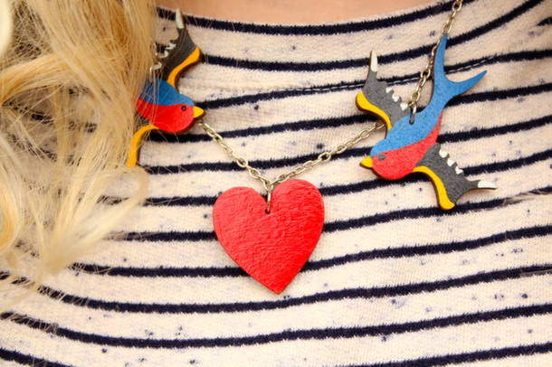 As well as my new dress, I’m wearing my beloved tattooed Louie boots from Dr Martens that I picked up in March, they’re so eye-catching, and you can check out a whole post about them here, and see them featured in a recent video here. To add to the tattoo theme, I went for this swallow and heart necklace from Things British and my old faithful Mango biker jacket. My bowler hat finishes things off nicely and can be bought instore at H&M and if you want to see more of it in action, it also featured in a haul video here where I talk more about it. Finally my berry lip is Kate Moss for Rimmel’s matte lipstick in 107 Wine.