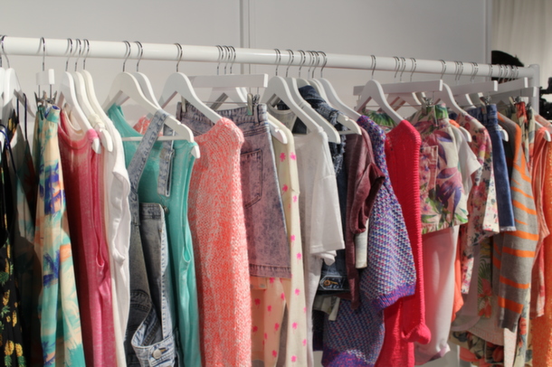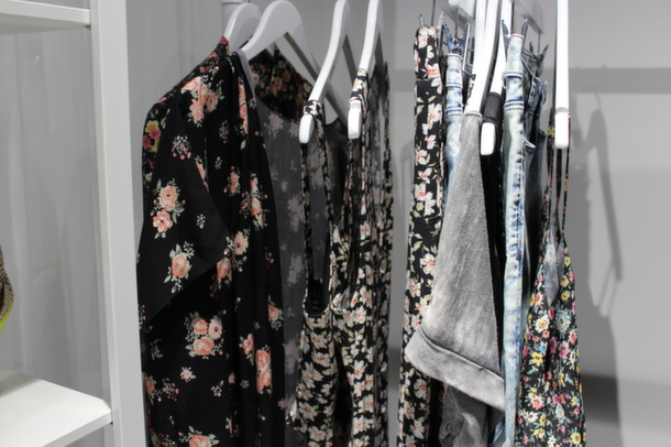 The SS14 collection is well thought out, with something for absolutely everyone. On entering Jade and I (as monochrome enthusiasts) ran straight for the black and white clothing rail ahead of us and got browsing. The accompanying lookbook we were given splits the looks into California Dreaming, Tomorrow’s Yesterday, Seattle Grunge and Neon Bloom. Seattle Grunge is right up my street, with acid wash, ditsy prints, more subdued hues and strappy dresses, denim jackets, and pops of pink. California Dreaming is exactly as you’d expect, Jade very rightly described it as ‘very Nicole Richie’. It’s completely boho, a Coachella-ready collection with tribal elements, paisley, and earthy tones.
